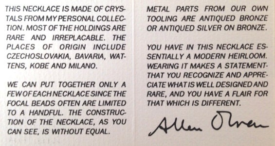 So, so lovely and well made-love my necklace! I have been a fan of Owen jewelry for many years, and their pieces never disappoint. Neither the earrings nor necklaces have ever broken or tarnished and I know I’m assured an automatic compliment whenever I wear them. Thrilled this jewelry is still being made!