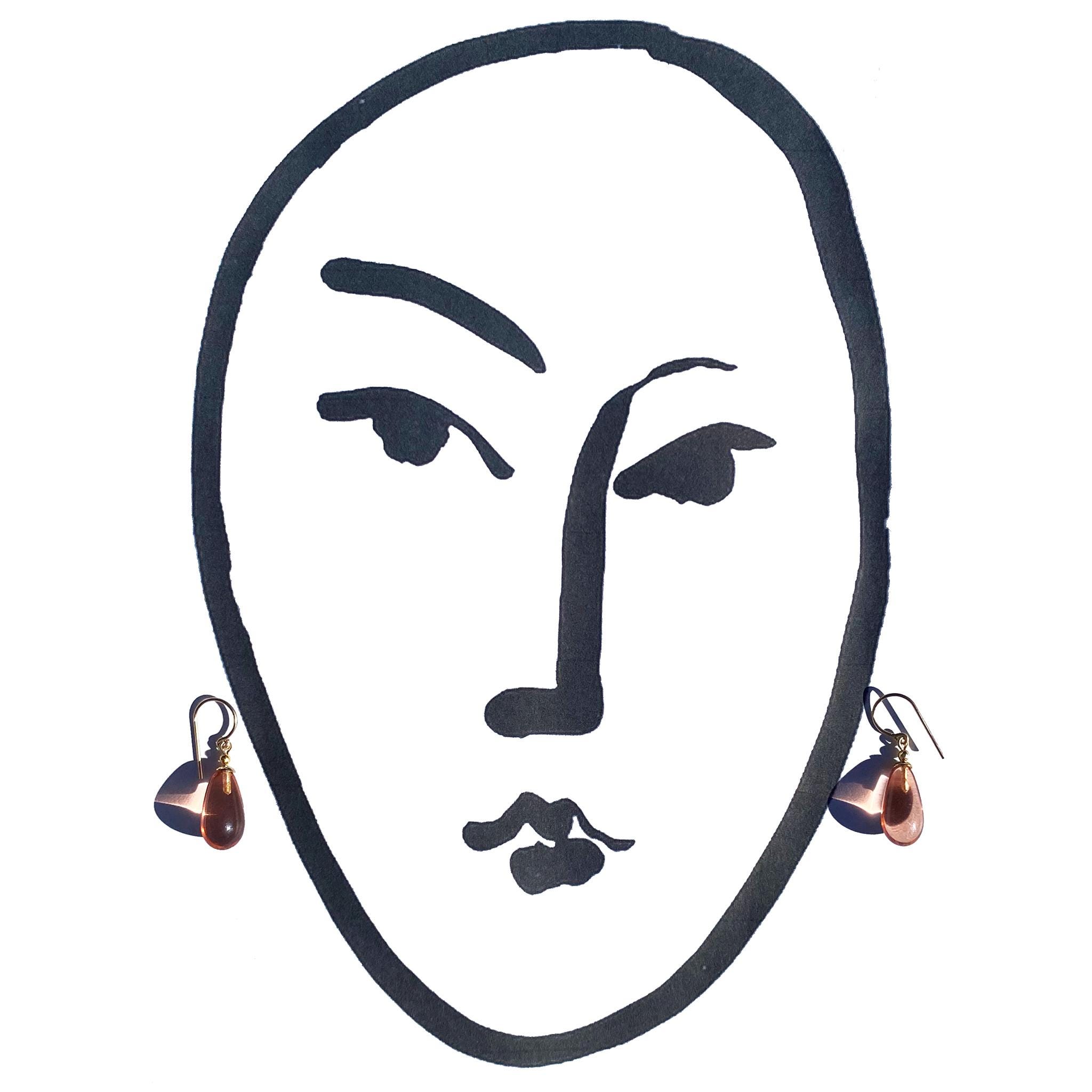 Pale peach glass earrings. German glass, from our collection. "Brights 18" measure 7/8 inches long. Ear wires are 14k. gold filled. All hand work done in the USA.